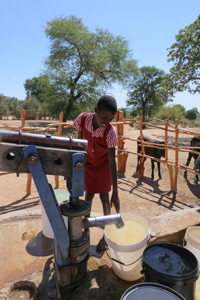 This file photo shows a school girl fetches water from a well in rural Masvingo province, Zimbabwe, on Feb. 15, 2016. (Xinhua/Xu Lingui)