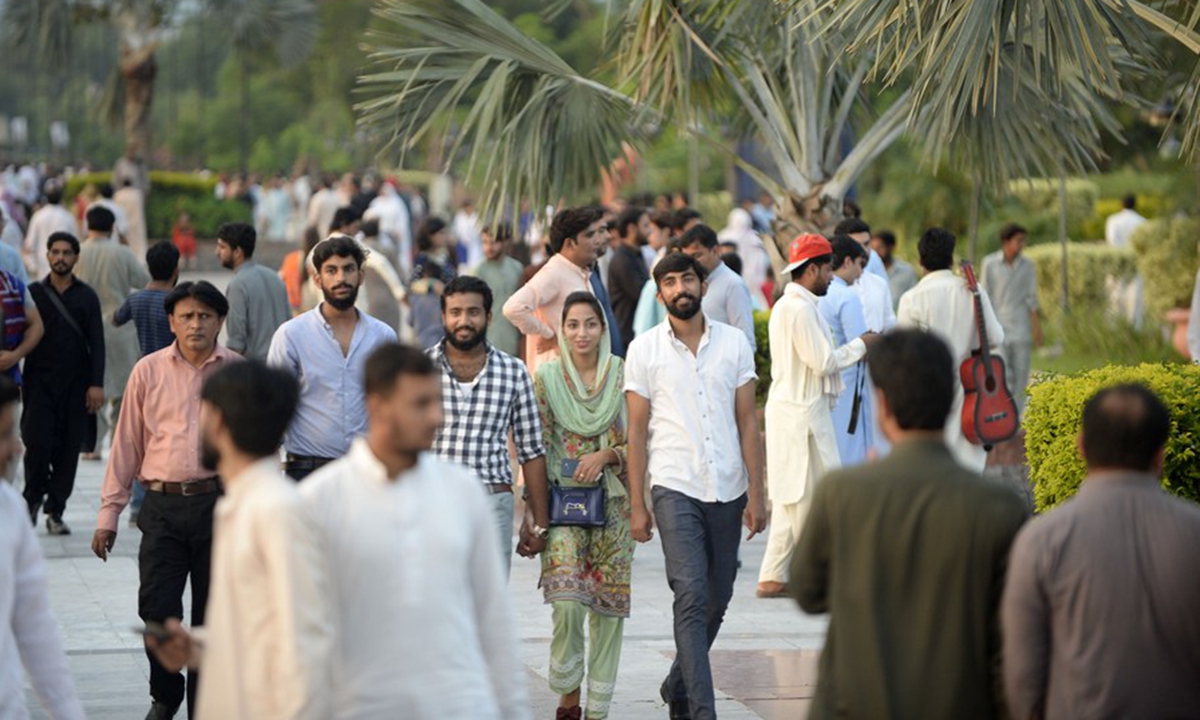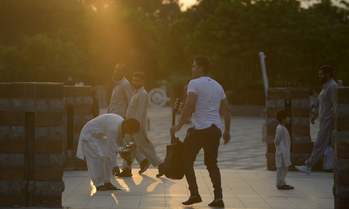 Tourists visit the Lake View Park in Islamabad, capital of Pakistan on Aug. 23, 2020. (Xinhua/Ahmad Kamal)