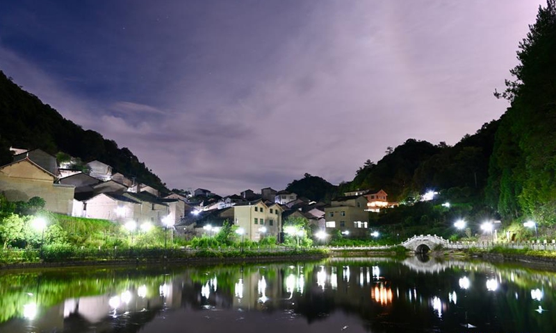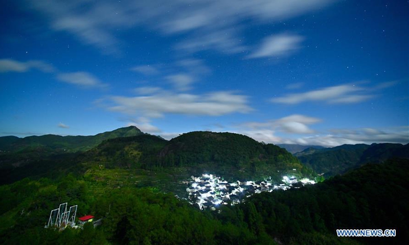 Photo taken on Aug. 1, 2020 shows a night view of Chenqiao Village, Zhouning County, southeast China's Fujian Province. (Xinhua/Jiang Kehong)