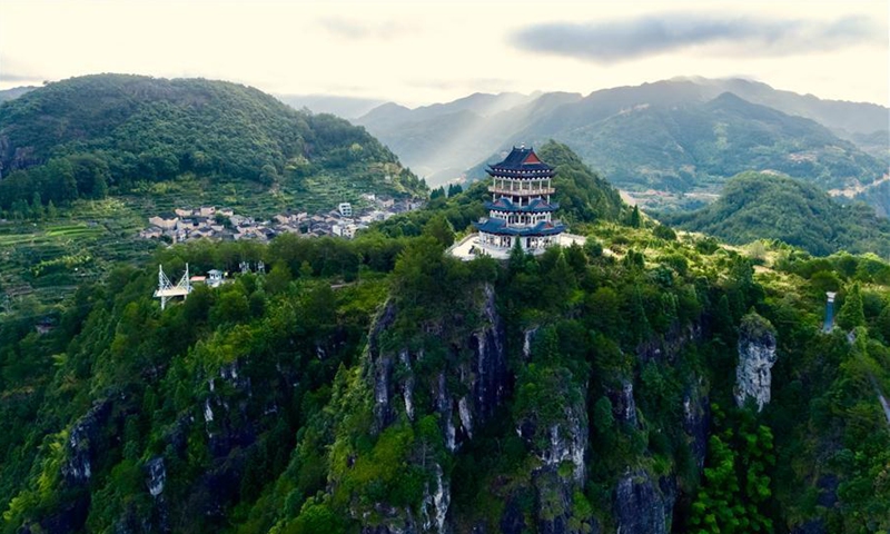 Aerial photo taken on Aug. 2, 2020 shows the scenery of Chenqiao Village, Zhouning County, southeast China's Fujian Province. (Xinhua/Jiang Kehong)