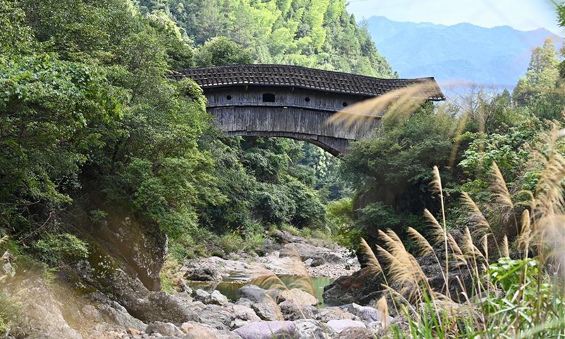 Photo shows an ancient covered bridge in Chenqiao Village, Zhouning County, southeast China's Fujian Province, Aug. 3, 2020. (Xinhua/Jiang Kehong)