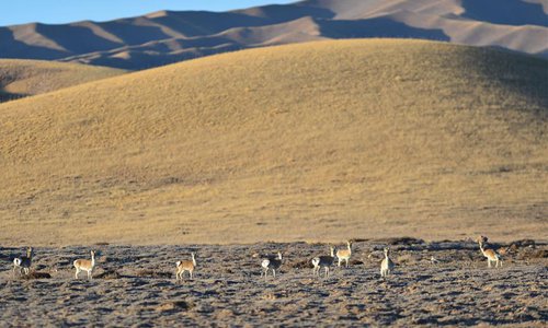 Photo taken on Nov. 9, 2019 shows a herd of Tibetan gazelles on a prairie in Maqen County of the Tibetan Autonomous Prefecture of Golog, northwest China's Qinghai Province. (Xinhua/Li Yaguang)