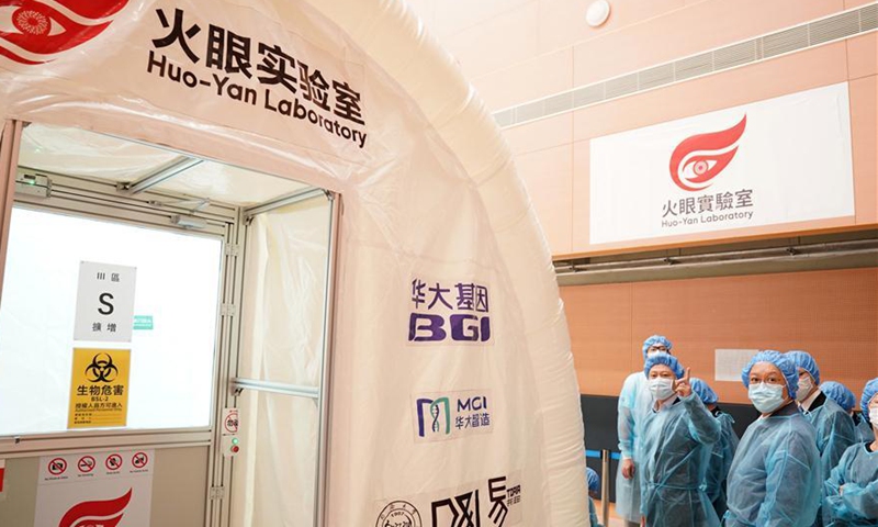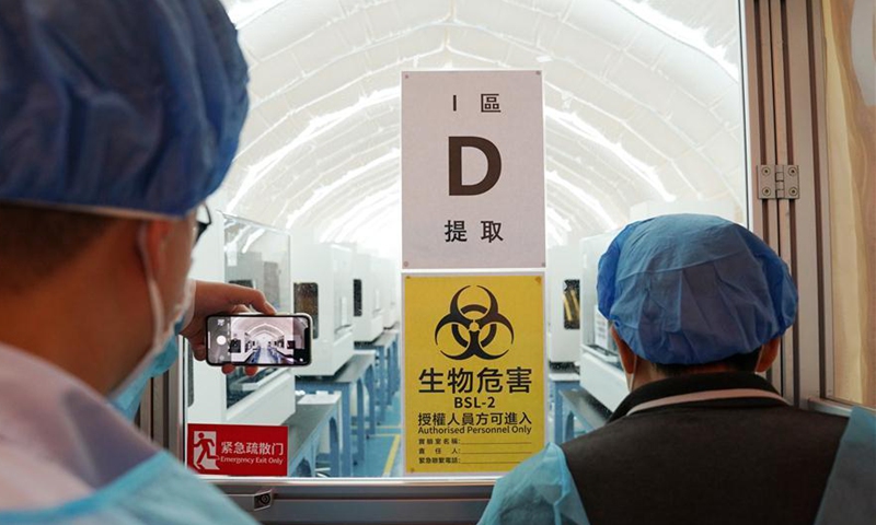 People visit the Fire Eye Laboratory in Hong Kong, south China, Aug. 26, 2020. Hong Kong's Fire Eye Laboratory at Sun Yat Sen Memorial Park Sports Center is ready to support large-scale COVID-19 testing under the Hong Kong Special Administrative Region (HKSAR) government's Universal Community Testing Program (UCT Program) to be launched on Sept. 1.Photo:Xinhua