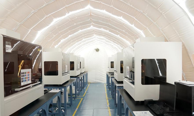 Photo taken on Aug. 26, 2020 shows the Fire Eye Laboratory geared up for large-scale COVID-19 testing in Hong Kong, south China. Hong Kong's Fire Eye Laboratory at Sun Yat Sen Memorial Park Sports Center is ready to support large-scale COVID-19 testing under the Hong Kong Special Administrative Region (HKSAR) government's Universal Community Testing Program (UCT Program) to be launched on Sept. 1.Photo:Xinhua