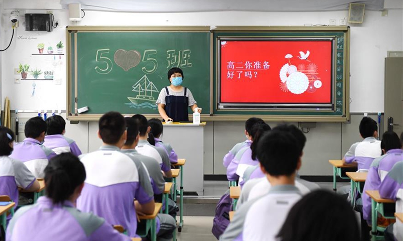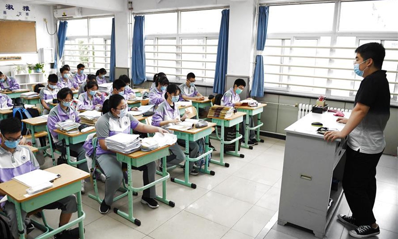 Students have class at High School Affiliated to Beijing Institute of Technology in Beijing, capital of China, Aug. 29, 2020. Students of senior high schools, first and third grades of junior high schools, and first grade of primary schools returned to school in Beijing on Saturday.Photo:Xinhua