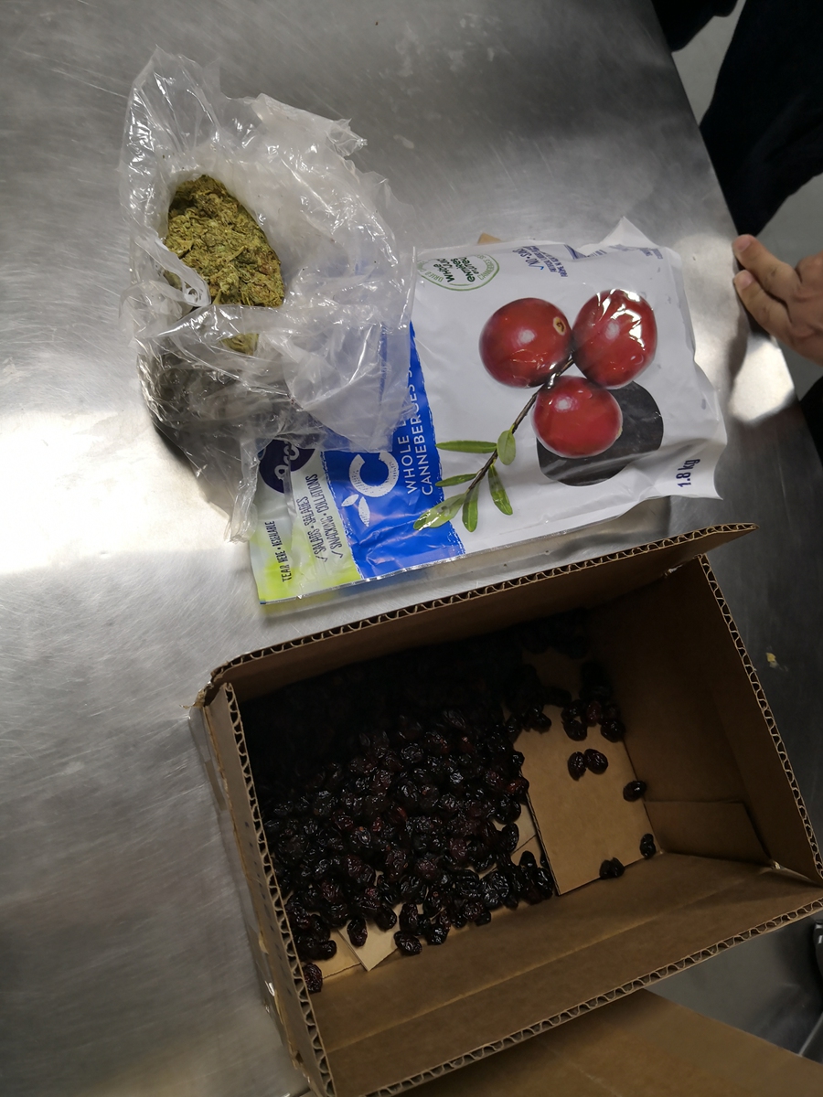After opening the box, the officers found that in addition to the dried cranberries, there were also three bags of vacuum-packed plant products, with a gross weight of 961 grams. These were found to be cannabis buds, the official said.