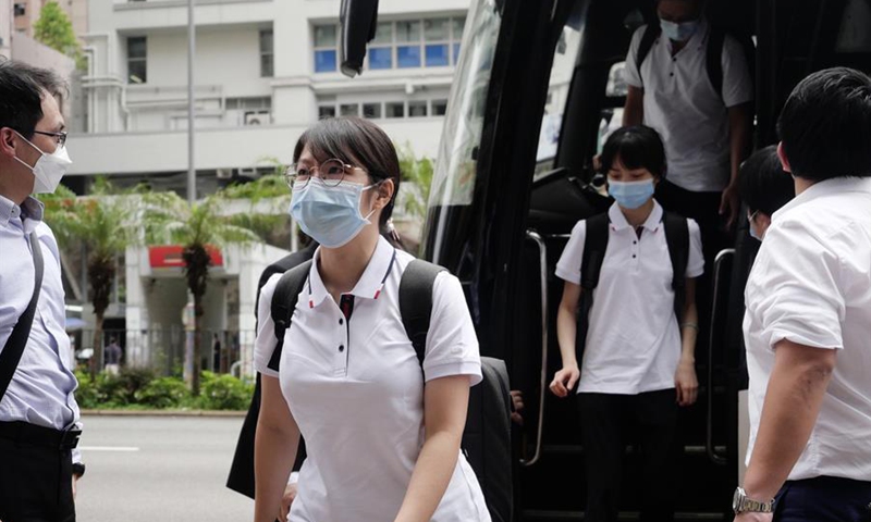 Members of the mainland nucleic acid testing team arrive at Metropark Hotel Kowloon in Hong Kong, south China, Aug. 28, 2020. Another over 160 members of the mainland nucleic acid testing team have arrived in Hong Kong Friday for the Universal Community Testing Program (UCT Program) that starts on Sept. 1. (Xinhua/Wang Shen)