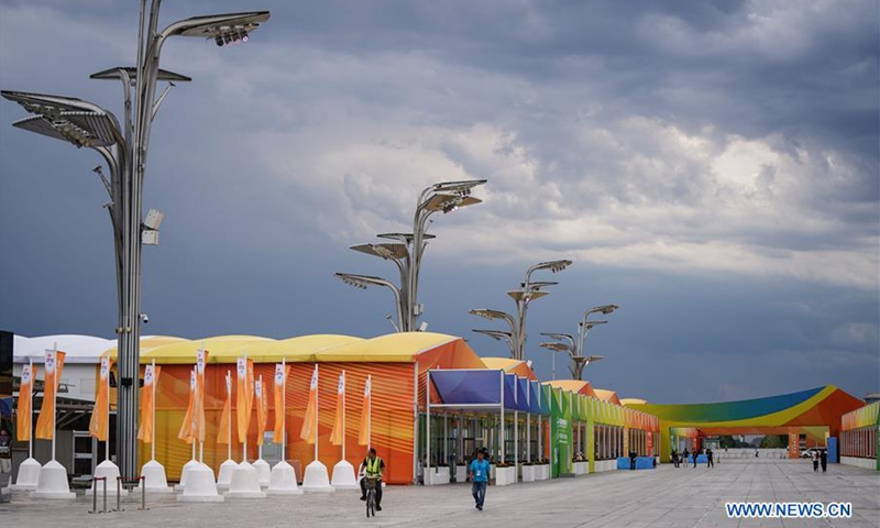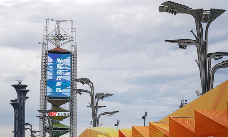 Photo taken on Sept. 1, 2020 shows a view of the outdoor exhibition area near the China National Convention Center, where the China International Fair for Trade in Services (CIFTIS) will be held, in the Beijing Olympic Park in Beijing, capital of China. The CIFTIS, a major platform for the services trade in the country, will be held in early September in Beijing. (Xinhua/Peng Ziyang)