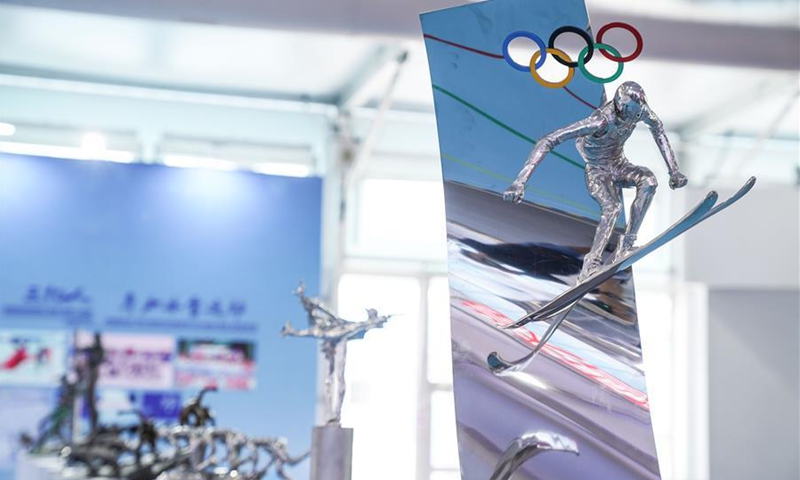 Photo taken on Sept. 1, 2020 shows winter games statues exhibited in an outdoor exhibition pavilion near the China National Convention Center, where the China International Fair for Trade in Services (CIFTIS) will be held, in the Beijing Olympic Park in Beijing, capital of China. The CIFTIS, a major platform for the services trade in the country, will be held in early September in Beijing. (Xinhua/Peng Ziyang)