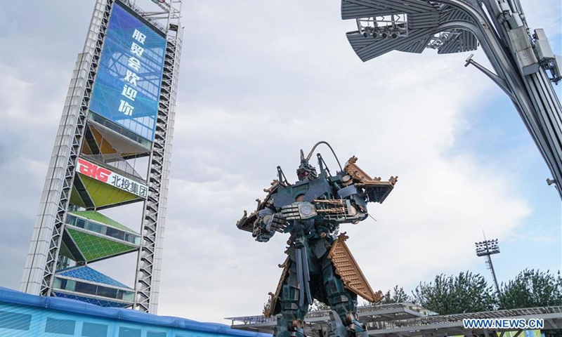 Photo taken on Sept. 1, 2020 shows a robot model at the outdoor exhibition area near the China National Convention Center, where the China International Fair for Trade in Services (CIFTIS) will be held, in the Beijing Olympic Park in Beijing, capital of China. The CIFTIS, a major platform for the services trade in the country, will be held in early September in Beijing. (Xinhua/Peng Ziyang)
