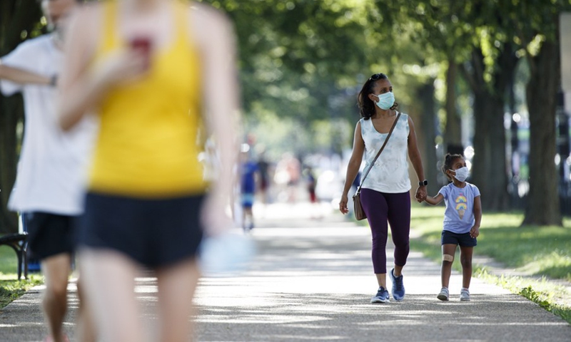 People tour the National Mall in Washington, D.C., the United States, Aug. 30, 2020. (Photo by Ting Shen/Xinhua)