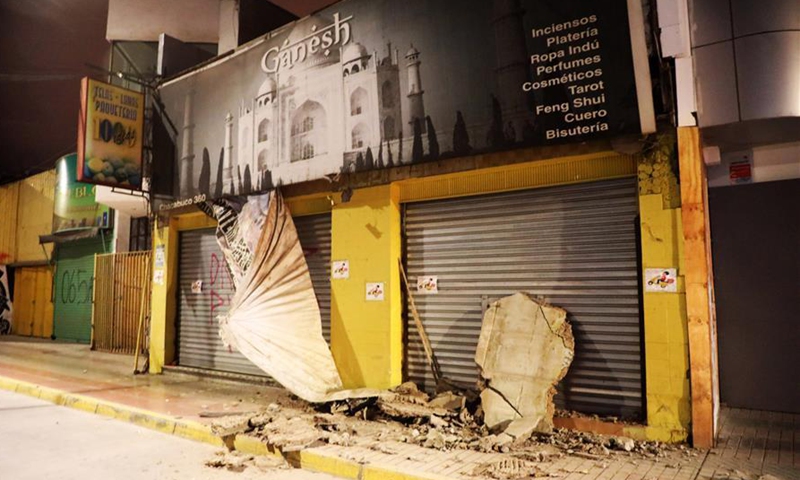 Houses are damaged by an earthquake in Atacama, Chile, Sept. 1, 2020. A powerful 7-magnitude earthquake that hit northern Chile just past midnight damaged buildings and roads, but inflicted no injuries, the Interior Ministry's National Emergency Office (ONEMI) said on Tuesday. (Agencia UNO/Handout via Xinhua)
