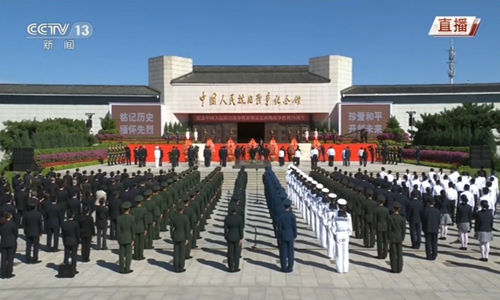 Chinese President Xi Jinping and other Party and state leaders pay tribute to martyrs and present floral baskets at the Museum of the War of the Chinese People's Resistance Against Japanese Aggression on Thursday morning in Beijing.