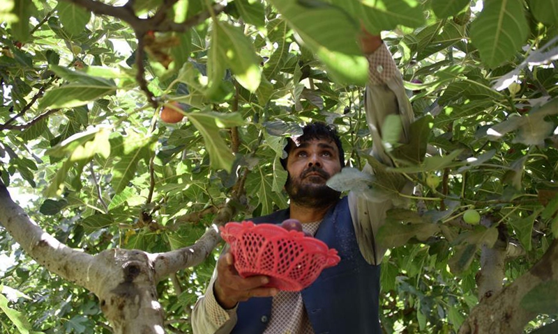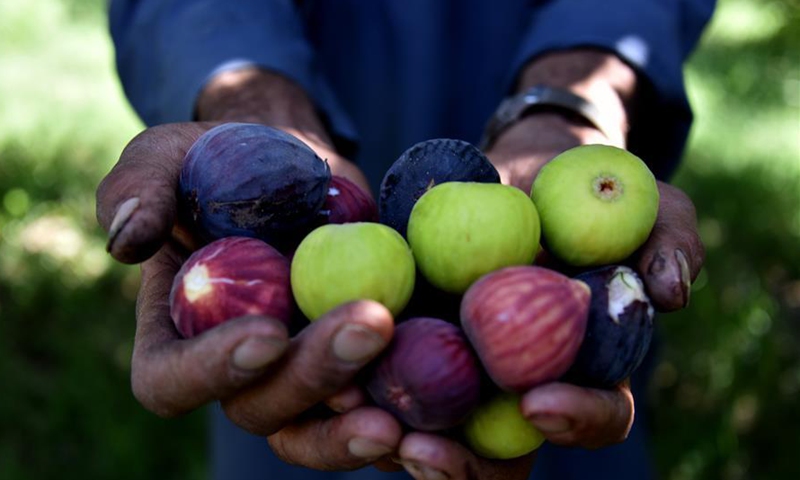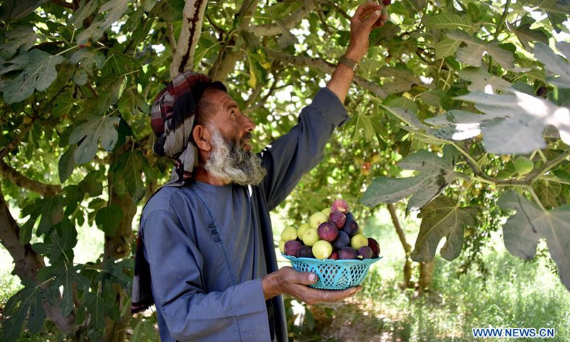 An Afghan farmer harvests figs at a garden in Arghandab district of Kandahar province, Afghanistan, Sept. 3, 2020.Photo:Xinhua