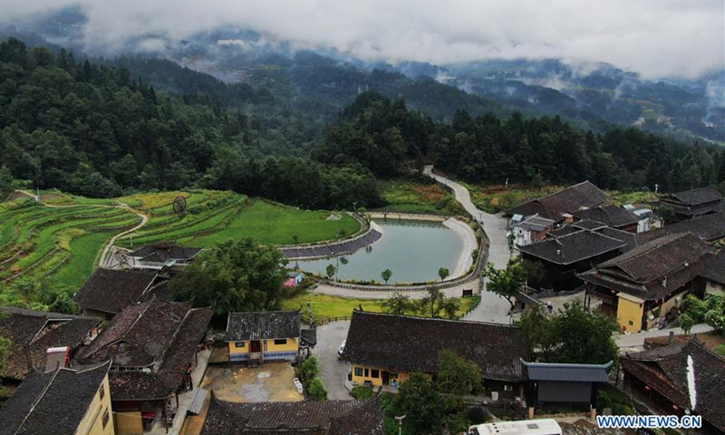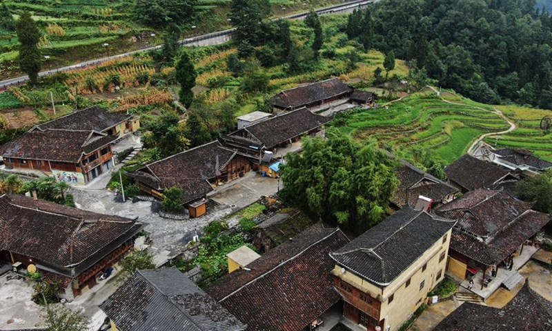Aerial photo taken on Sept. 4, 2020 shows the scenery of a village in Houping Township in Wulong District, southwest China's Chongqing. Wulong carries out ecological-tourism according to its mountainous environment in recent years. By improving the accommodation level and capacity of the villages, rural tourism has been developed, which helps people here get rid of poverty without working far away from home.Photo:Xinhua