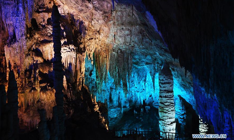 Photo taken on Sept. 3, 2020 shows a view at Furongdong scenic area in Wulong District, southwest China's Chongqing. Wulong carries out ecological-tourism according to its mountainous environment in recent years. By improving the accommodation level and capacity of the villages, rural tourism has been developed, which helps people here get rid of poverty without working far away from home.Photo:Xinhua