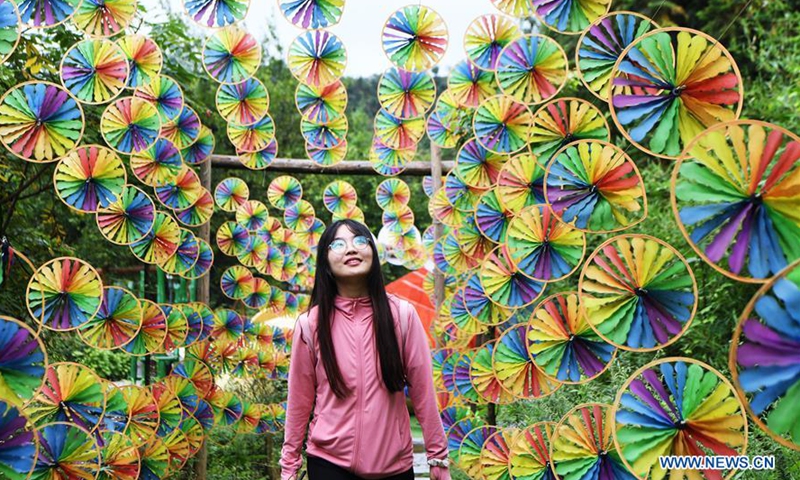 A tourist visits Baimashan scenic area in Wulong District, southwest China's Chongqing, Sept. 3, 2020. Wulong carries out ecological-tourism according to its mountainous environment in recent years. By improving the accommodation level and capacity of the villages, rural tourism has been developed, which helps people here get rid of poverty without working far away from home. Photo:Xinhua