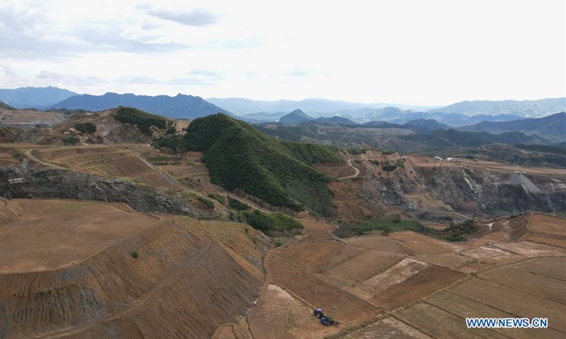 Aerial photo shows a field for sowing after restoration of a disused mine in Maquanzi Town of Qinglong Manchu Autonomous County, north China's Hebei Province, Sept. 5, 2020. In recent years, Qinglong Manchu Autonomous County has focused on restoring open pits and reclaimed 8,762 mu (about 584 hectares) of land. (Xinhua/Yang Shiyao)