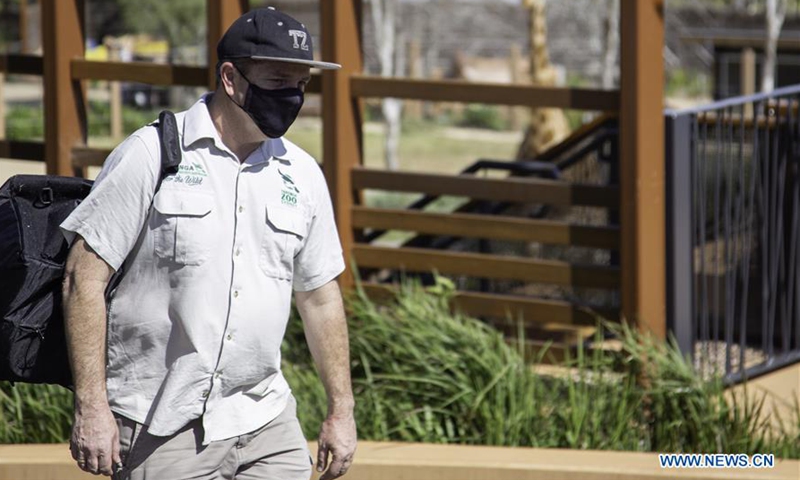 A staff member walks in Taronga Zoo during the COVID-19 pandemic in Sydney, Australia, on Sept. 3, 2020. Some zoos and wildlife parks here have reopened to the public in Sydney. (Photo by Hu Jingchen/Xinhua)