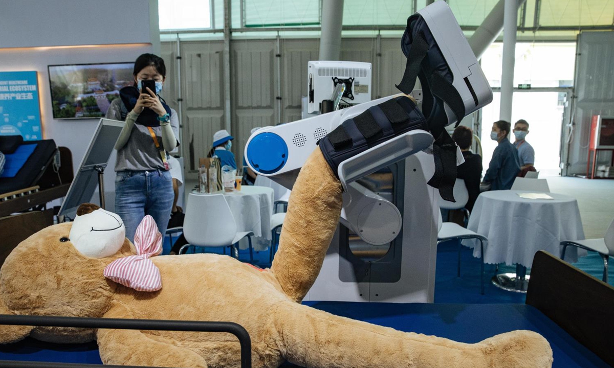 A rehabilitation training robot for lower limbs displayed at the fair Photo: Li Hao/GT