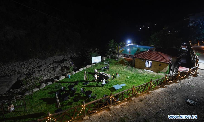 Tourists enjoy leisure time on the lawn of a rural inn at Fuchunjiang Town in Tonglu County, east China's Zhejiang Province, Sept. 5, 2020. In recent years, the Tonglu County has invested in building a rural slow-paced life experiencing area at Fuchunjiang Town, which is based on the town's some beautiful villages and renowned scenic spots. (Xinhua/Huang Zongzhi)
