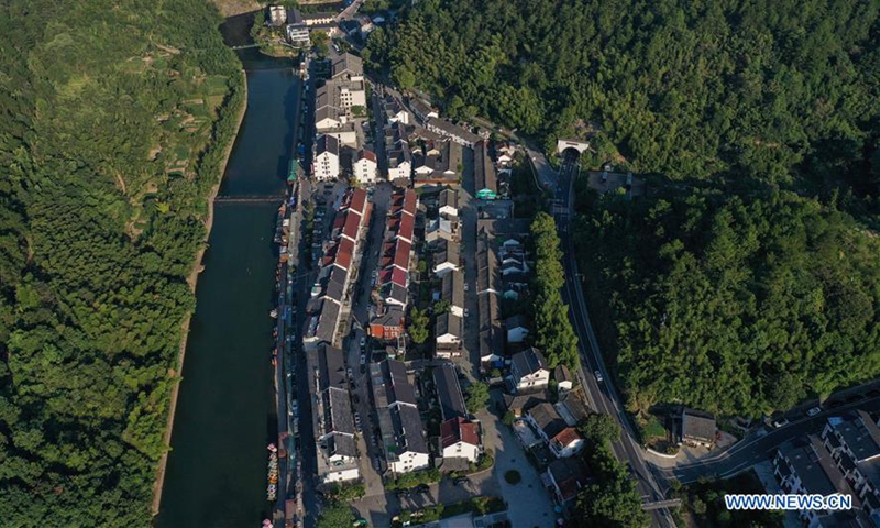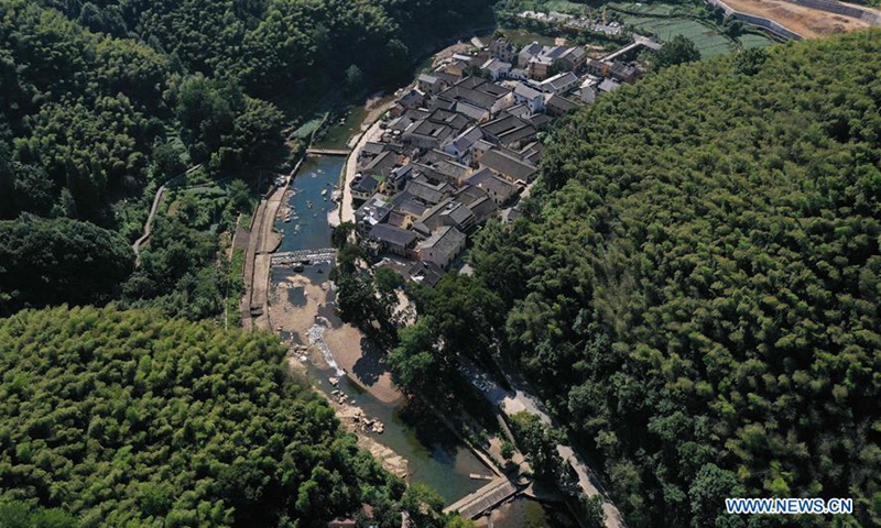 Aerial photo taken on Sept. 6, 2020 shows a view of Shishe Village at Fuchunjiang Town in Tonglu County, east China's Zhejiang Province. In recent years, the Tonglu County has invested in building a rural slow-paced life experiencing area at Fuchunjiang Town, which is based on the town's some beautiful villages and renowned scenic spots. (Xinhua/Huang Zongzhi)
