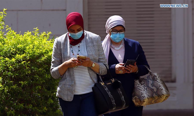 People wearing face masks walk on a street in Cairo, Egypt, on Sept. 7, 2020. Egypt registered on Monday 178 new COVID-19 infections, raising the total cases in the country to 100,041, said the health ministry. (Xinhua/Ahmed Gomaa)