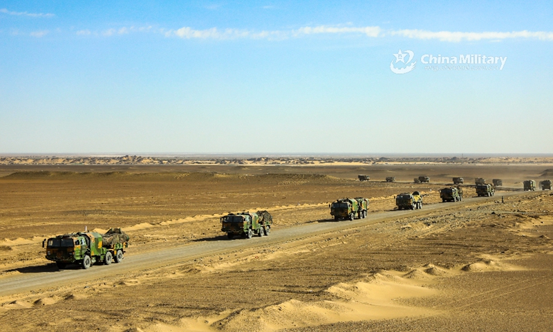 A convoy of surface-to-air missile launching trucks attached to an air defense brigade under the PLA 77th Group Army is en route to a designated training field during a long-distance maneuver in late August, 2020. (eng.chinamil.com.cn/Photo by Hu yonghui)