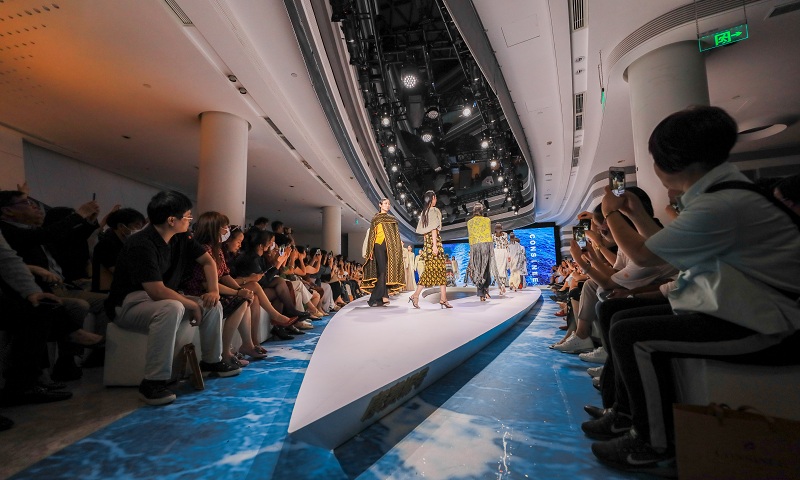 Models walk a runway showing more than 40 ready-to-wear garments designed by renowned overseas Chinese designer Steven Oo in Consinee Shanghai Center on September 2. Photos: Courtesy of Consinee Group