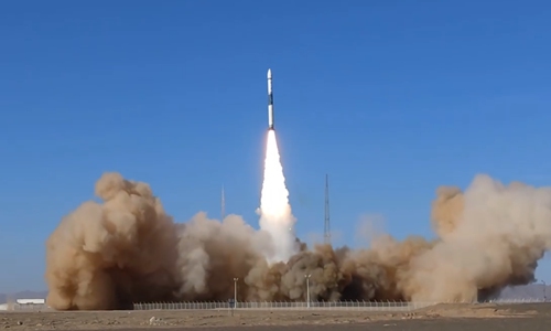China’s solid-fueled KuaiZhou-1A (KZ-1A) Y11 carrier rocket blasted off at 11:40 am on Wednesday. Photo: Screenshot of video from China's CCTV News