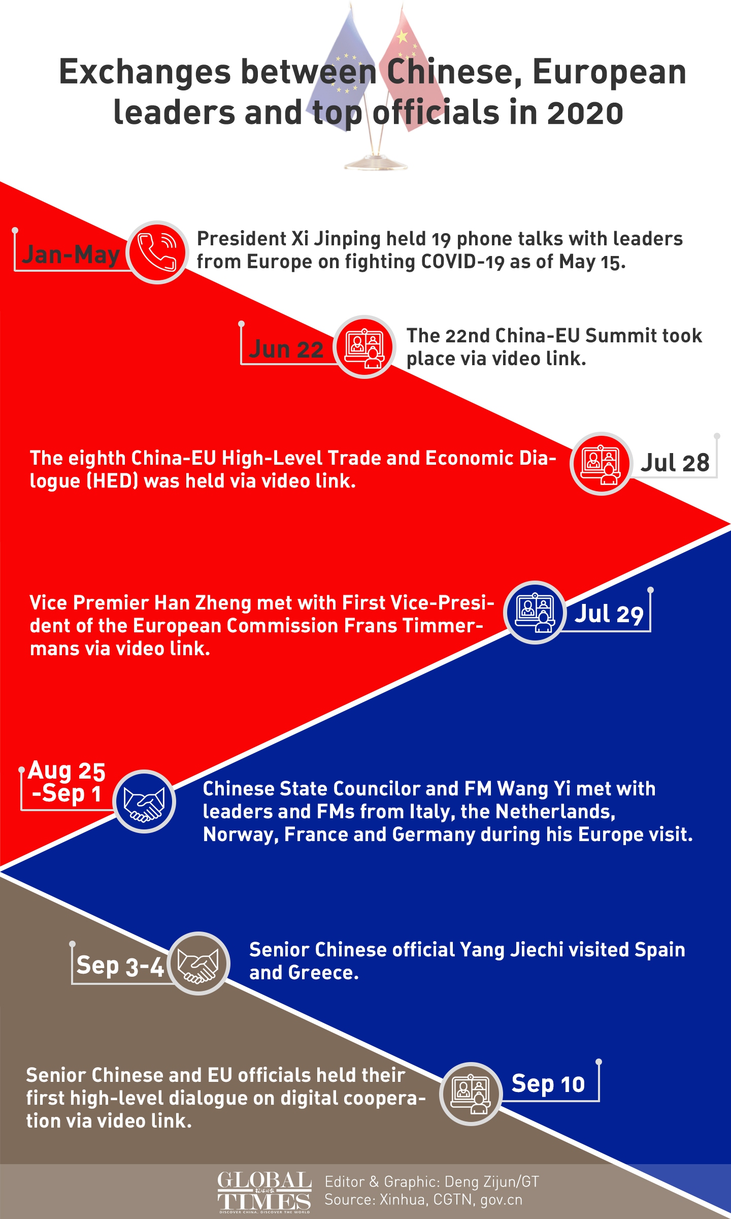Exchanges between Chinese, European leaders and top officials in 2020