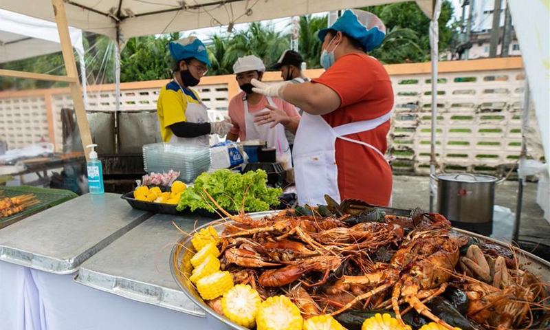 Vendors prepare food at a food festival in the old town of Phuket, Thailand, Sept. 13, 2020. The two-day festival was held to boost tourism and local economy. (Xinhua/Zhang Keren)