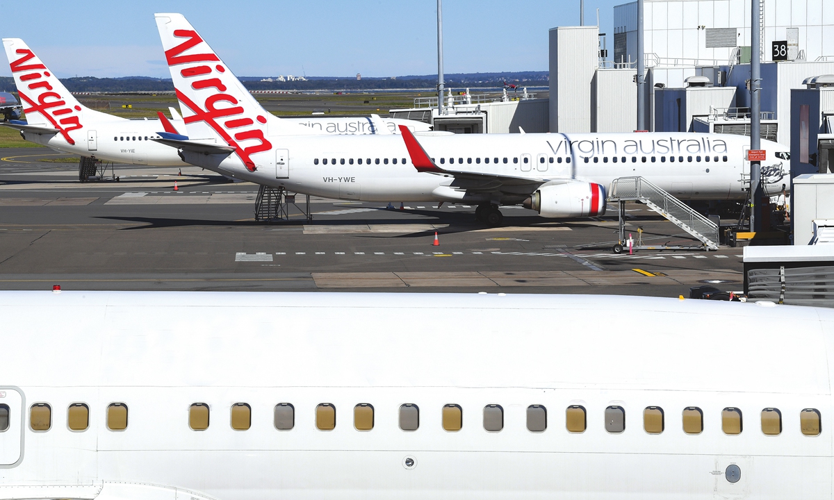 Virgin Australia Boeing 737s sit empty on the tarmac at Sydney Airport on August 5, in Sydney, Australia. Photo: VCG