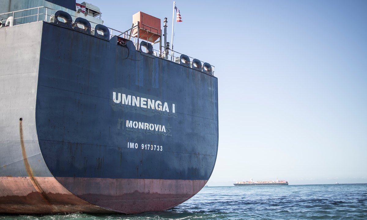A fuel ship vessel is seen anchored in Algoa Bay outside Port Elizabeth, on July 8. Photo: AFP