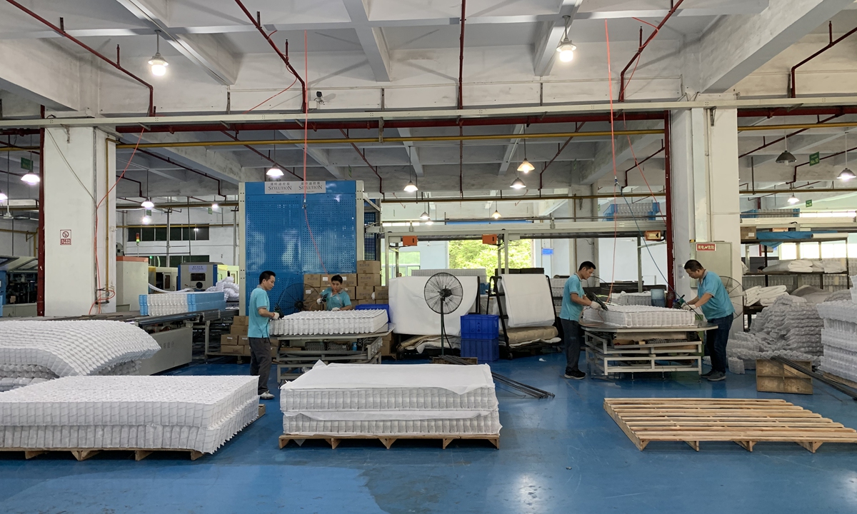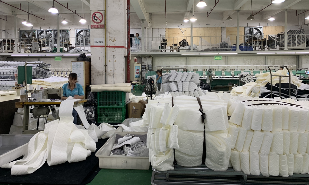 Employees produce furniture and mattress at a factory run by Taiwan businessman in Dongguan, South China's Guangdong Province, on Monday. Photo: Chen Qingqing/GT