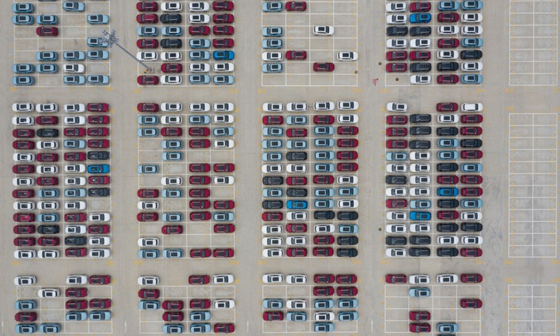 Aerial photo shows cars at the Ningde base of SAIC Motor Corporation Ltd. in Ningde, southeast China's Fujian Province, Sept. 15, 2020. (Xinhua/Song Weiwei)