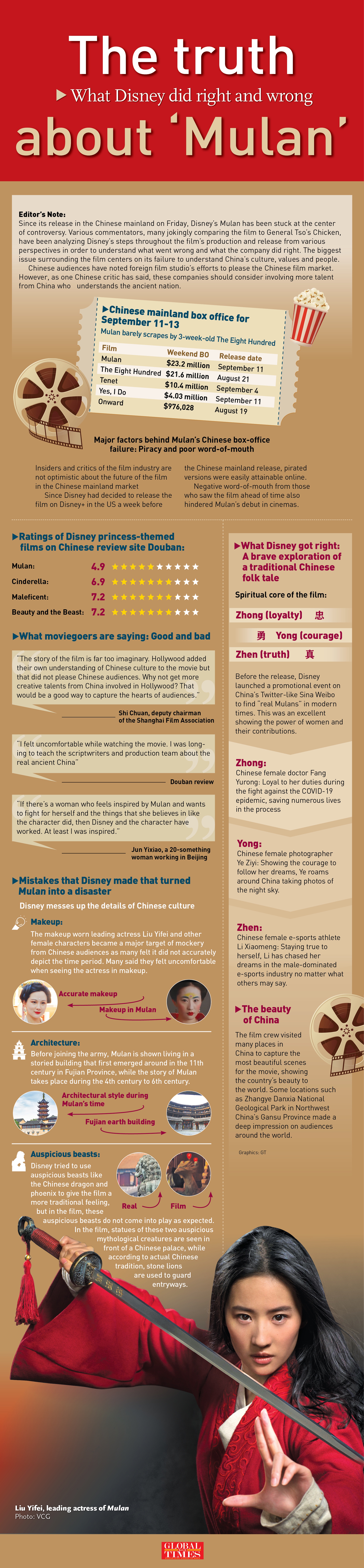 Mulan has been stuck at the center of controversy. Various commentators, many jokingly comparing the film to General Tso's Chicken, have been analyzing Disney's steps throughout the film's production and release from various perspectives in order to understand what went wrong and what the company did right. The biggest issue surrounding the film centers on its failure to understand China's culture, values and people.
