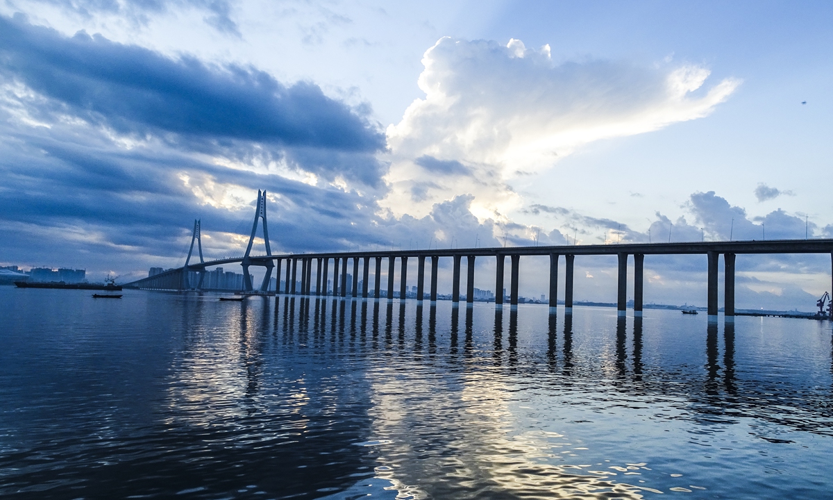 After the boat goes under the 4-kilometer-long Zhanjiang Bay Bridge, a splendid coastal city view is unveiled in front of you, made up of a water sport center, coastal tourism resort, parks and a sea view promenade.