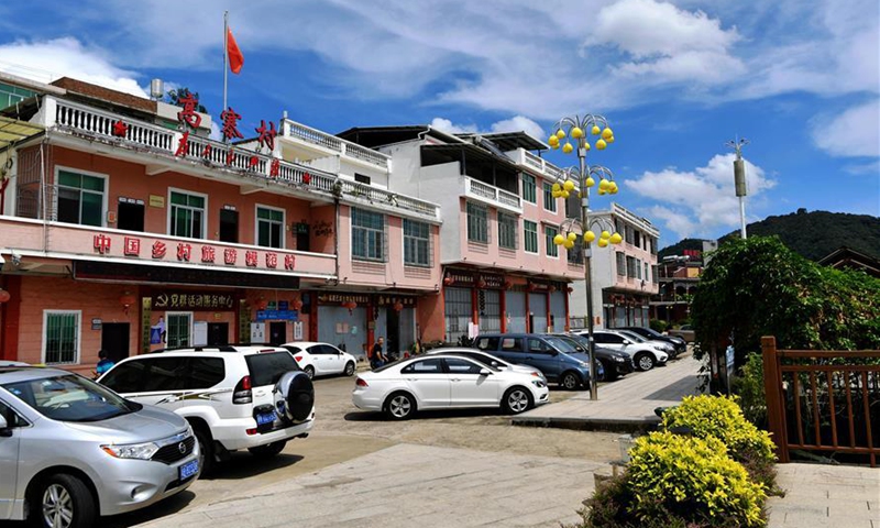 Photo taken on Sept. 17, 2020 shows a view of the Gaozhai Village of Xiazhai Town in Pinghe County, southeast China's Fujian Province. Lying in the southwest of Fujian Province, Pinghe is famous for the cultivation of pomelos with a planting area of around 700,000 mu (about 46,667 hectares). Today, the output value of industries related to pomelo has surpassed ten billion yuan (about 1.48 billion U.S. dollars) as the annual yield of pomelos here has reached 1.3 million tonnes. Increasing per capita disposable income from 2,141 yuan (about 316 U.S. dollars) in 1996 to 19,360 yuan (about 2,860 U.S. dollars) in 2019, the cultivation of pomelos has paved the way for poverty alleviation and better life for the farmers who engage in the industries. (Xinhua/Wei Peiquan)