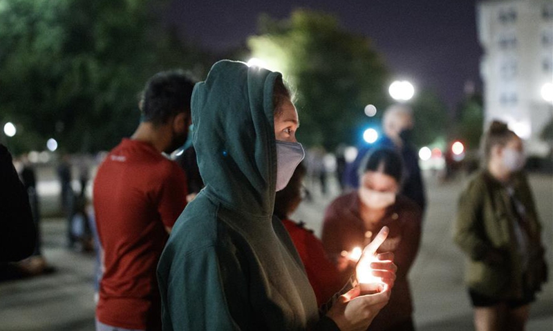 People gather in front of the U.S. Supreme Court mourning the passing of U.S. Supreme Court Justice Ruth Bader Ginsburg in Washington, D.C., the United States, Sept. 18, 2020. U.S. Supreme Court Justice Ruth Bader Ginsburg has died, the Supreme Court said Friday. The second female justice on the U.S. highest court, Ginsburg, 87, was a legal pioneer advocating for gender equality. (Photo by Ting Shen/Xinhua)