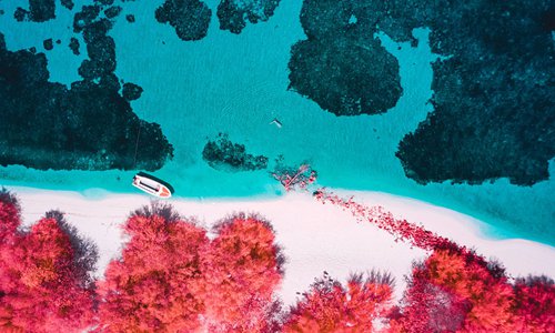 Photo shows a mesmerizing and stark contrast between the red palm trees and the famed crystal clear water of the Maldives. Using an infra-red filter camera, Italian photographer Paolo Pettigiani captured the spectacular scenery of the picturesque island. Photo: VCG