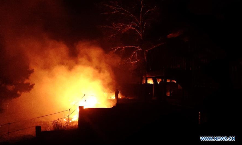 Photo taken on Sept. 18, 2020 shows the Bobcat fire in Los Angeles County, California, the United States. The Bobcat Fire started on Sept. 6 in the Angeles National Forest in Los Angeles County. (Xinhua)