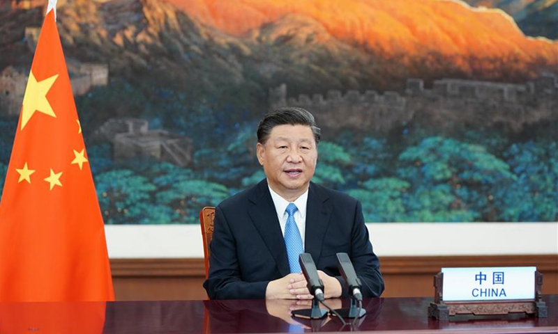 Chinese President Xi Jinping addresses the General Debate of the 75th session of the United Nations General Assembly via video on September 22, 2020. Photo: Xinhua