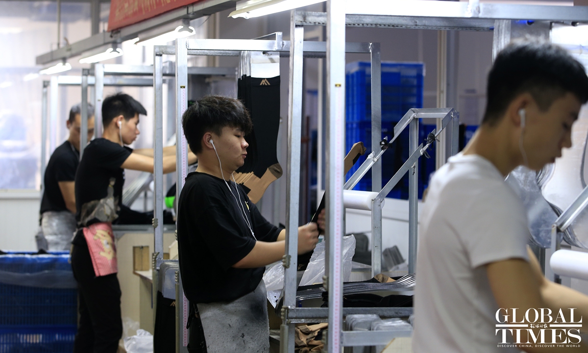 Socks factory in Zhejiang Province remains busy despite global pandemic