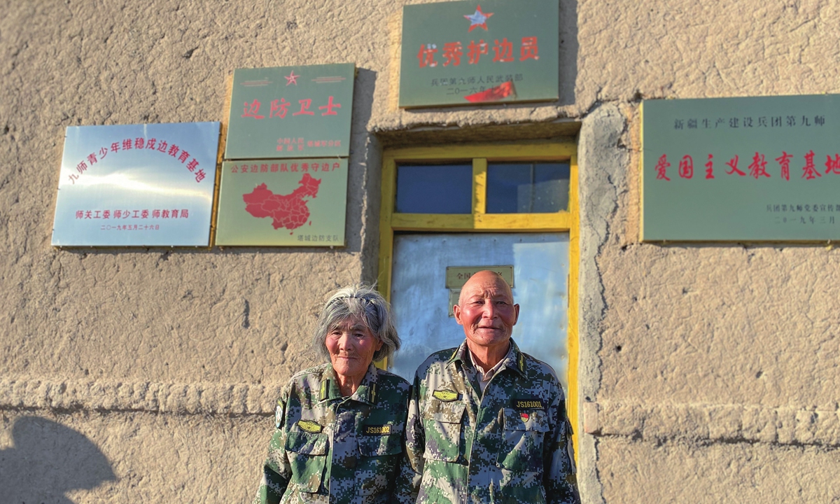 Solitary patroller Wei Deyou and his wife stand in front of their old house in Yumin county, Tacheng Prefecture, Xinjiang. Photo: Cao Siqi/GT