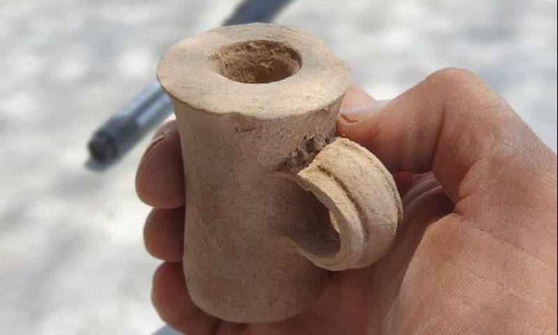 Photo shows the inkwell found in an archaeological site near the Jewish settlements cluster of Gush Etzion. (Xinhua/Israel Civil Administration)
