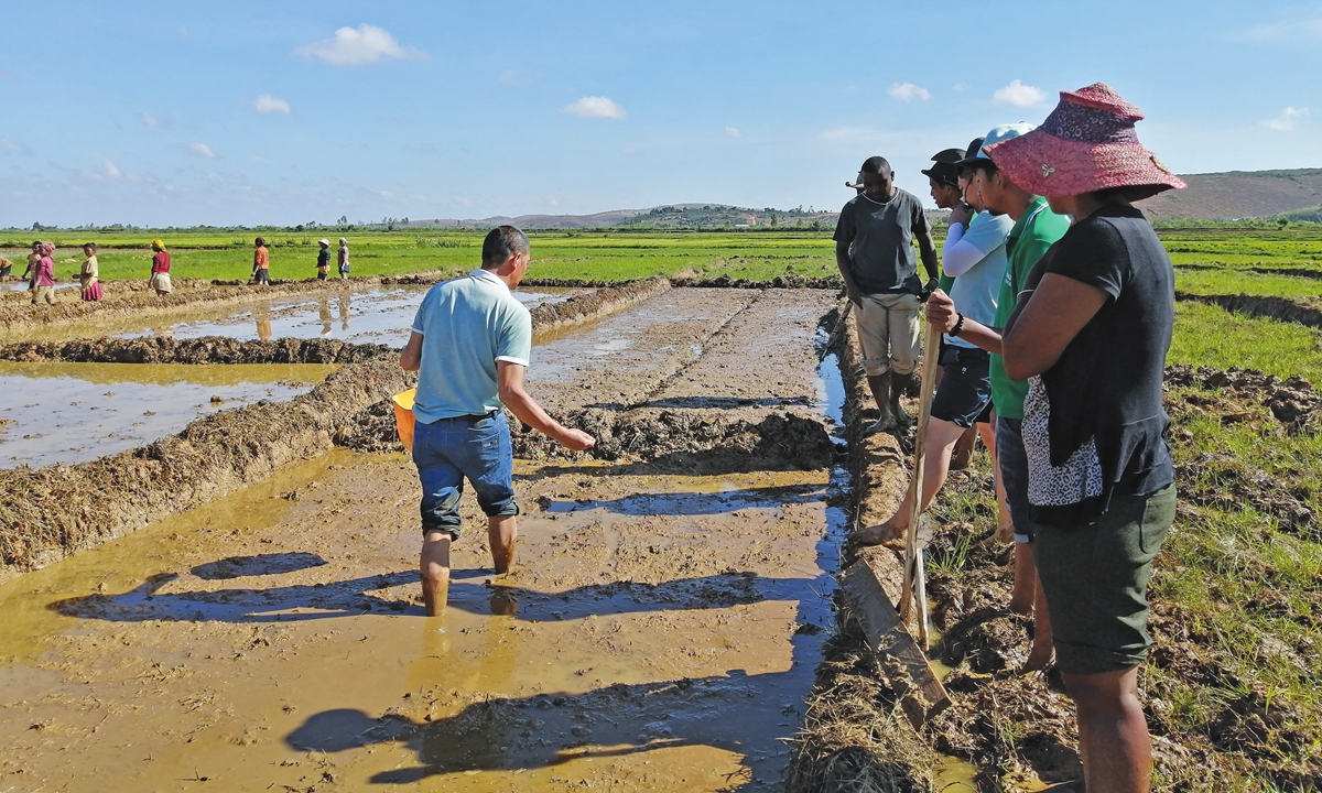 Chinese experts dispatched by the FAO-China South-South Cooperation Program give training on hybrid rice planting in Madagascar in 2019. Photo: Courtesy of the FAO China Office