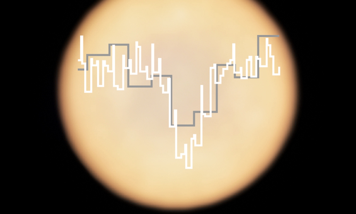 A real image of Venus, taken with ALMA, in which ESO is a partner, with two superimposed spectra taken with ALMA (in white) and the James Clerk Maxwell Telescope Photo: VCG