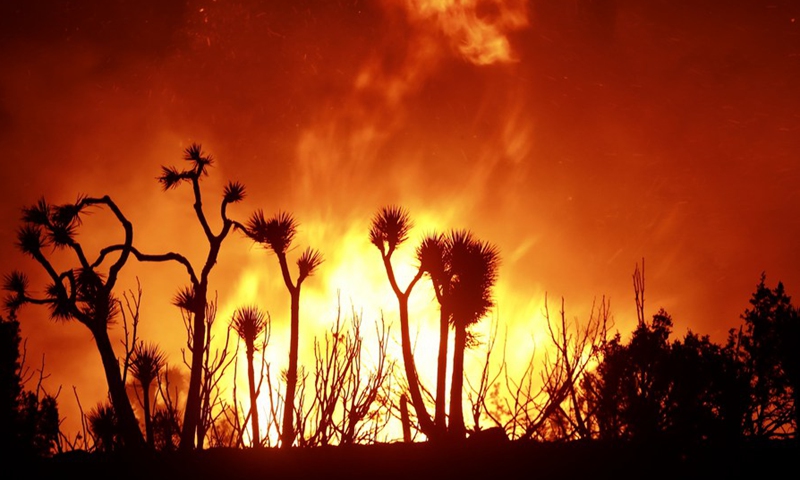 Photo taken on Sept. 18, 2020 shows the Bobcat fire in Los Angeles County, California, the United States. (Xinhua)