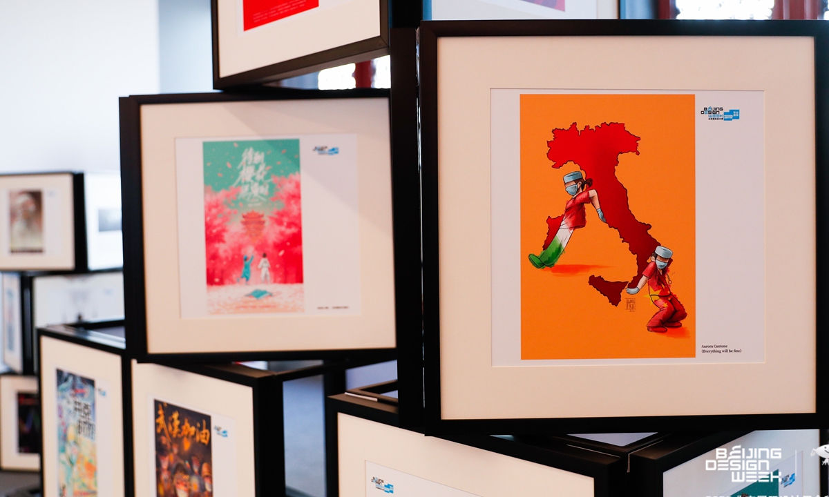 The showcase of posters depicting people's fight against the COVID-19 epidemic Photo: Courtey of Beijing Design Week